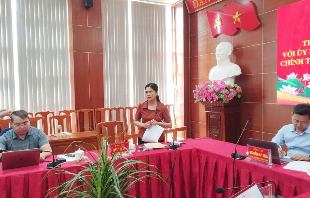 Đ/c- Bùi Thị Lý, Phó Bí thư Thường trực Đảng ủy xã phát biểu tại buổi làm việc