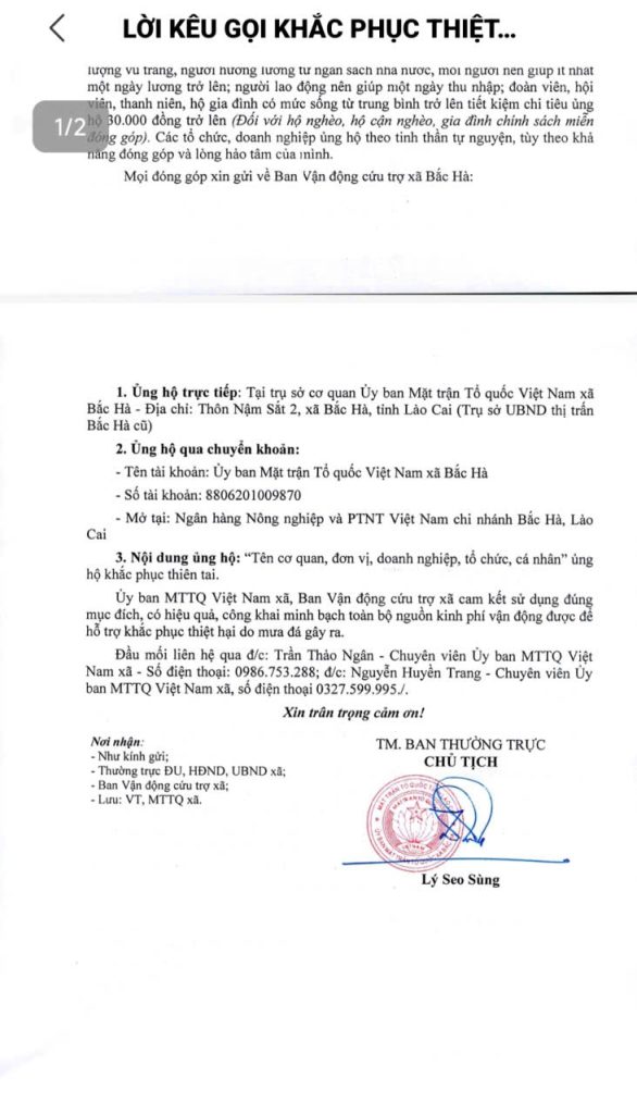 Tên tài khoản: BAN VẬN ĐỘNG CỨU TRỢ XÃ BẮC HÀ