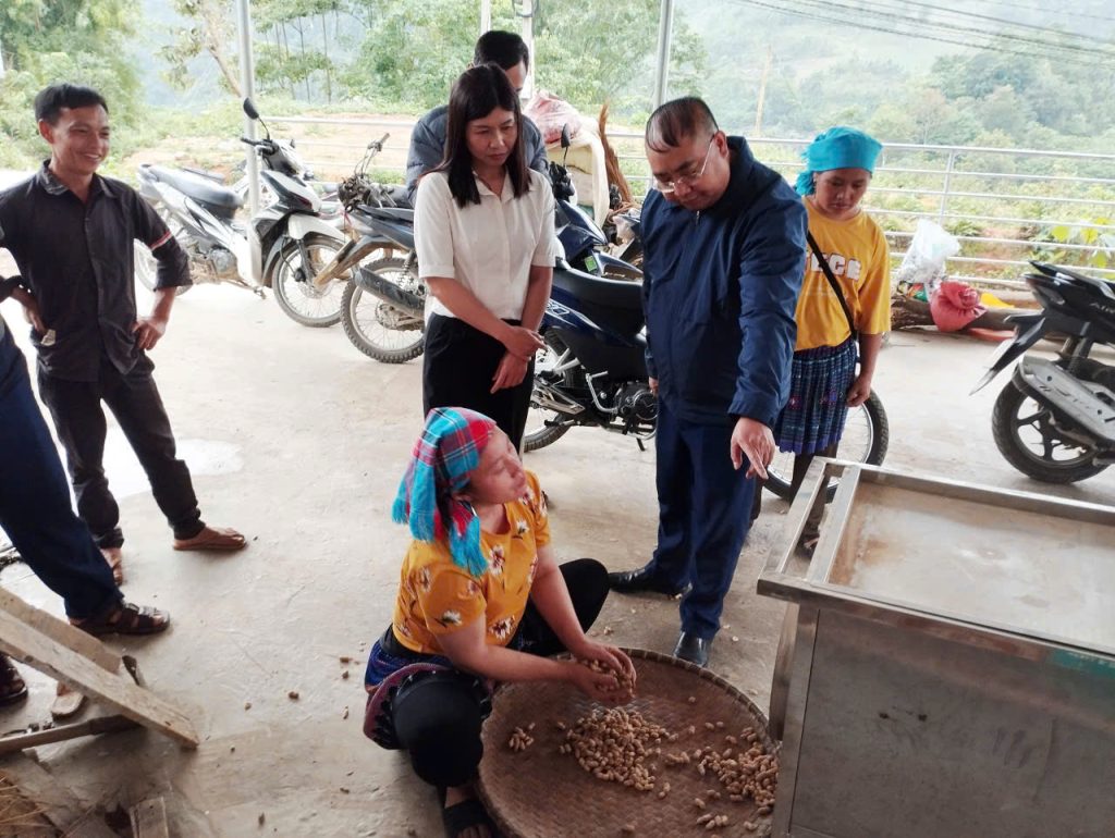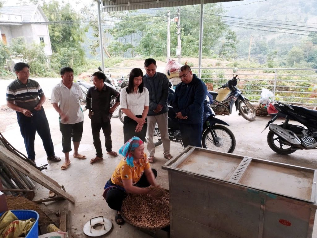 Kiểm tra hiệu quả mô hình rang lạc bằng máy tại thôn Cốc Cài Thượng
