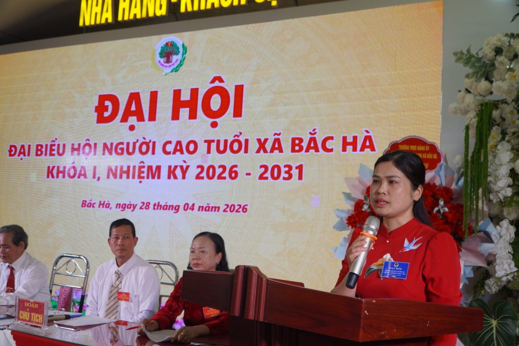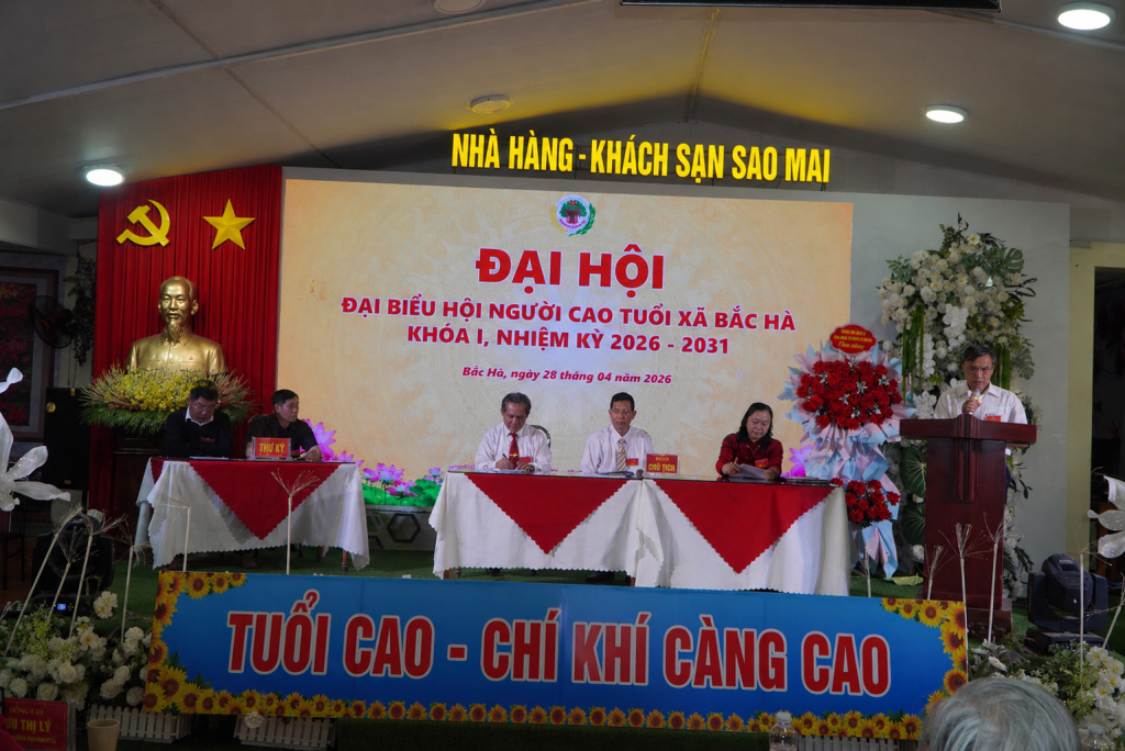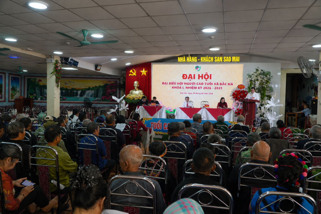 Sáng 28 tháng 4, tại Hội trường Khách sạn Sao Mai.Hội Người cao tuổi xã Bắc Hà long trọng tổ chức Đại hội đại biểu lần thứ I, nhiệm kỳ 2026–2031 Dự và chỉ đạo Đại hội có đồng chí Bùi Thị Lý – Phó Bí thư Thường trực Đảng ủy xã; đồng chí Phạm Thị Non – Ủy viên Ban Thường vụ, Phó Chủ tịch UBND xã; đồng chí Lý Seo Sùng – Ủy viên Ban Thường vụ, Chủ tịch Ủy ban MTTQ Việt Nam xã; cùng đại diện các ban, ngành, đoàn thể xã và 83 đại biểu tiêu biểu đại diện cho các chi hội người cao tuổi ở các thôn trên địa bàn.